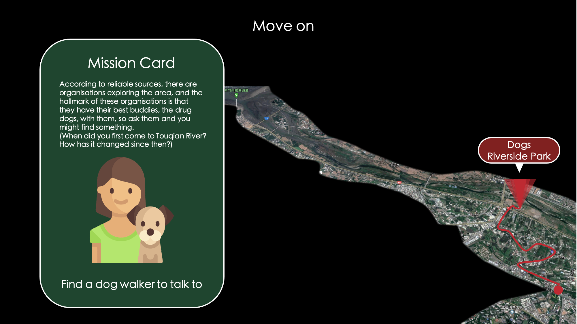 Therefore, the team intends to use Line Chatbot as the touchpoint to achieve the goal of revitalizing the Touqian river through bicycle tour: on the one hand, it uses gamified blind tour to attract more people to the Touqian River, and on the other hand, it helps the government to improve the Touqian River by sending back the information collected from users to the government.